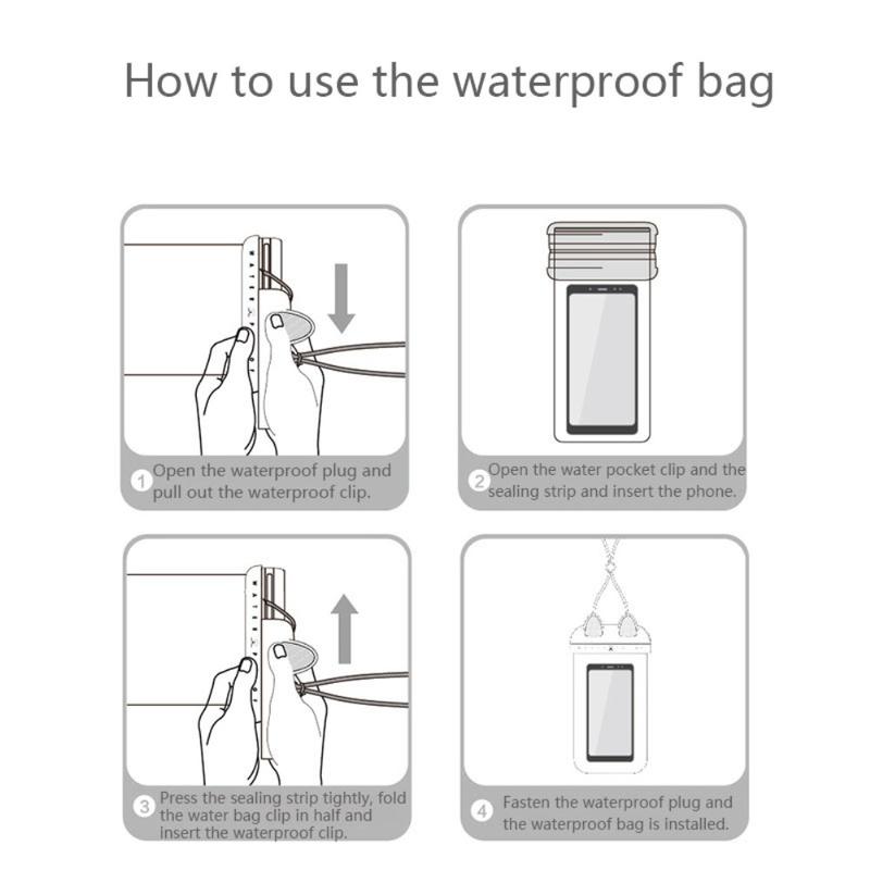 Perfect voor zwembaden, stranden, vissen, zwemmen, zeilen, skiën, varen, kajakken, snorkelen, tubing, raften, douchen, sauna en andere waterparkactiviteiten, houdt je telefoon en portemonnee perfect droog en veilig