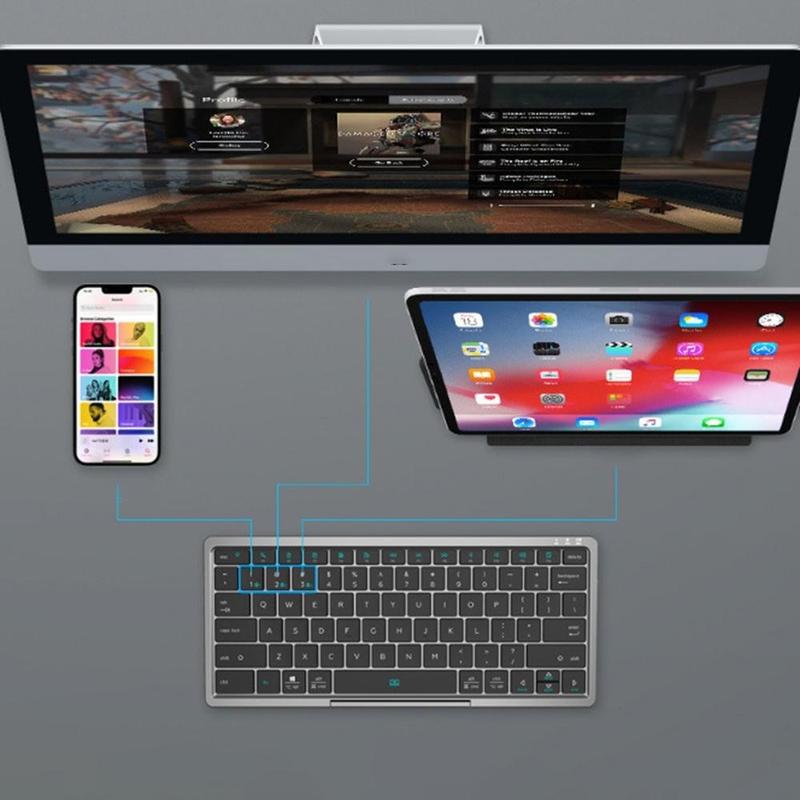- Draadloos Bluetooth-compatibel toetsenbord met ondersteuning voor maximaal drie aangesloten apparaten