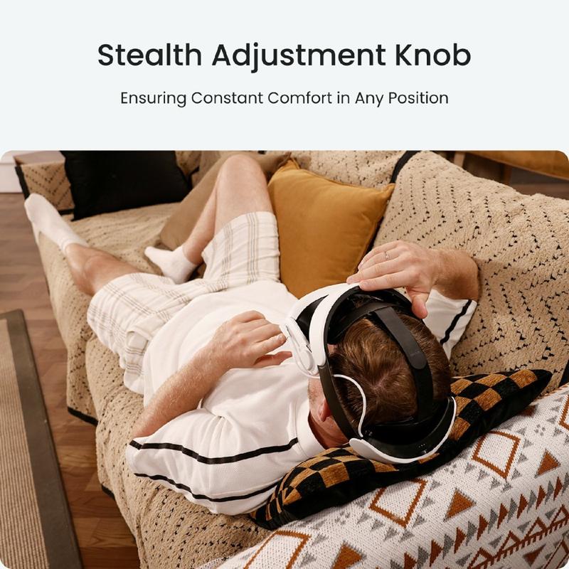 - Een verstelbaar draaimechanisme zorgt ervoor dat de headset horizontaal blijft, wat helpt bij duidelijkere beelden en minder vermoeide ogen.