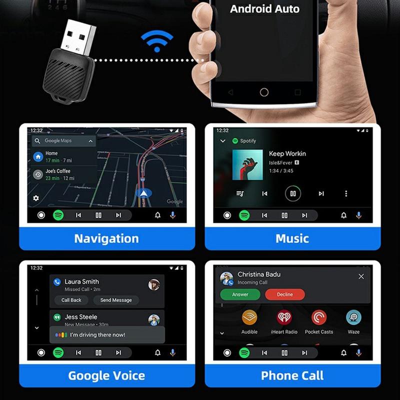 Maak van de in de fabriek geïnstalleerde CarPlay / Android Auto aansluiting in elk compatibel voertuig een kabelvrije ervaring. Deze ultracompacte adapter (slechts 3,42 x 2,02 x 0,53 cm, 20 g) sluit je aan op de bestaande USB-poort en koppelt met je telefoon via 2,4 / 5 GHz Wi-Fi en Bluetooth 5.0. Binnen enkele seconden verschijnen je apps, kaarten en spraakassistent op het infotainmentscherm - geen bungelende kabels, geen handset die aan je broekzak is vastgemaakt.