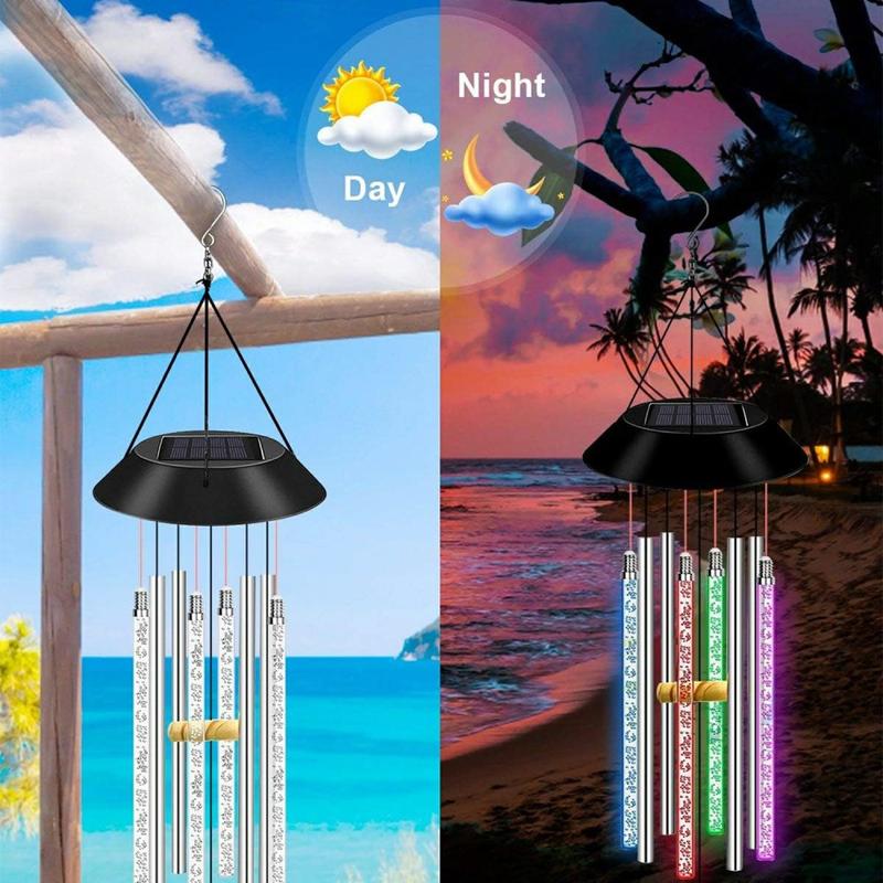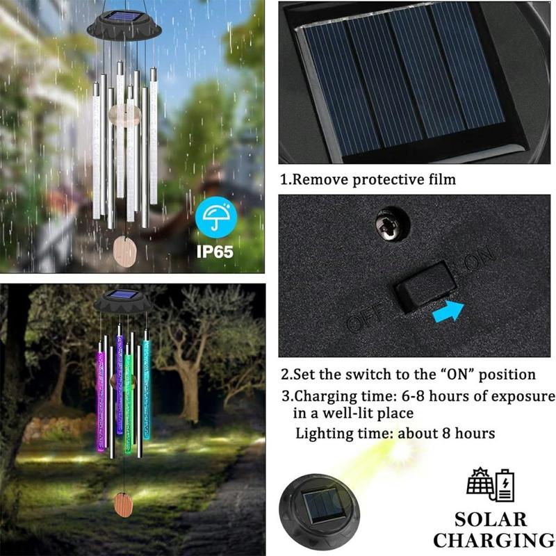 Verander terrassen, balkons en boomtakken in een bewegende regenboog. Deze windgong op zonne-energie combineert zacht wiegende acrylbuizen met zeven kleurcyclerende LED's die na zonsondergang van rood naar violet verkleuren. Een monokristallijn paneel van 50 × 50 mm laadt overdag de ingebouwde 600 mAh Ni-MH-batterij op, waarna de lamp 's nachts automatisch wordt ingeschakeld voor maximaal 12 uur betoverende gloed - geen bedrading, geen energierekeningen, gewoon moeiteloze sfeer binnen of buiten.