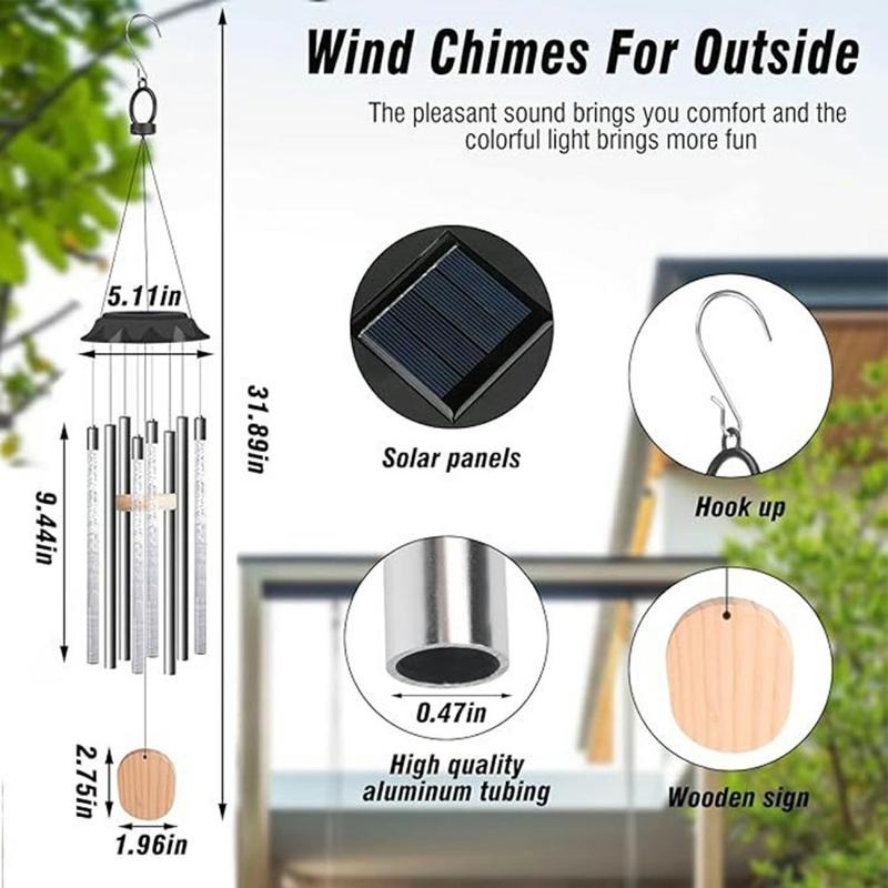 Zonnewindgong - 7-kleuren veranderende LED opknoping tuinornament, 96 cm, IP65 waterdicht