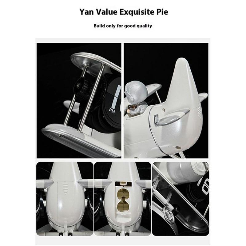 Verhoog je interieur met de Time Flyer Airplane Flip Desk Clock, een uniek uurwerk dat vintage flip mechanica combineert met een charmant vliegtuigvormig ontwerp. Deze klok is gemaakt van duurzaam PVC plastic en roestvrijstalen onderdelen. Hij houdt niet alleen de tijd nauwkeurig en geruisloos bij, maar vormt ook een boeiend accent in elke kamer.