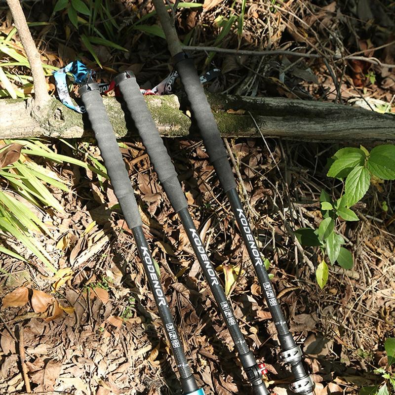 De KODENOR 63-135cm 3-delige wandelstokken zijn gemaakt van koolstofvezel en zorgen voor lichtgewicht maar duurzame ondersteuning voor wandelliefhebbers. Ontworpen met externe vergrendelingsmechanismen, bieden deze stokken eenvoudige verstelbaarheid en een stevige grip. De intrekbare functie maakt ze handig voor opslag en reizen, perfect voor zowel beginnende als ervaren wandelaars.