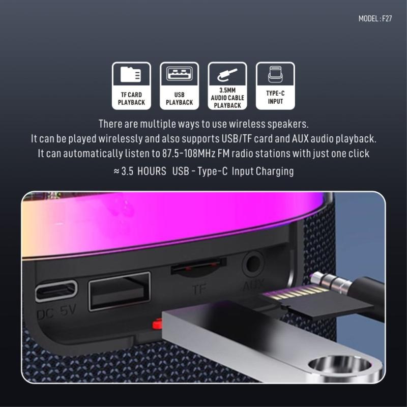Breng je geluid overal naartoe met de Konfulon F27 Bluetooth-luidspreker, een compact maar krachtig audiosysteem met dubbele 8W drivers en een draadloze microfoon. Hij is ontworpen voor muziek, karaoke en entertainment en combineert helder geluid, draagbaarheid en gemak in één slank pakket.