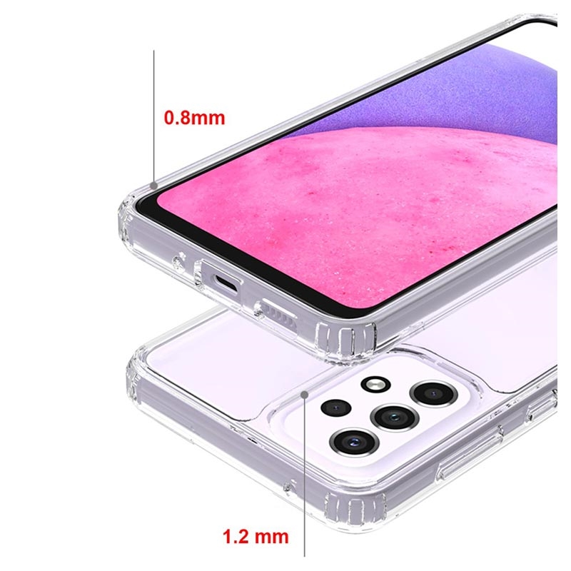 Bescherm uw Samsung Galaxy A33 5G zonder zijn ware schoonheid te camoufleren in deze kristalheldere, krasbestendige hybride hoes.