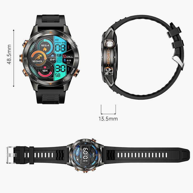 KT80 Sports Smart Watch - 3ATM waterdicht, Bluetooth bellen, 1.46 "HD touchscreen, geïntegreerde zaklamp