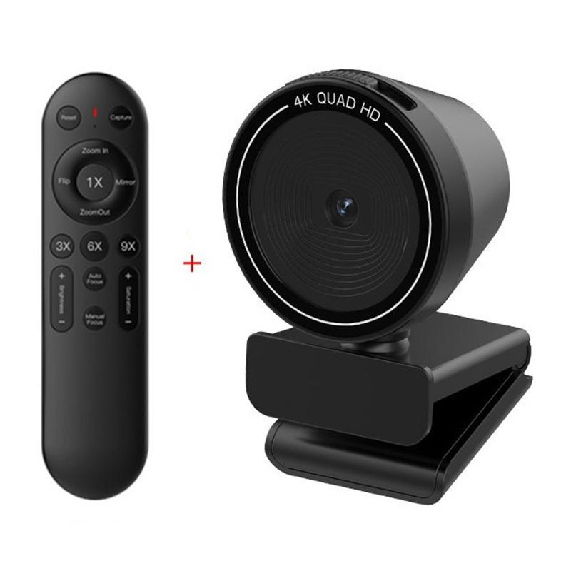 Met de draaibare voet kunt u eenvoudig de perfecte hoek instellen op een laptop of monitor, en uw privacy wordt goed beschermd met een fysieke schuifschakelaar en een geïntegreerde privacyafdekking, zodat u de controle behoudt wanneer de camera niet in gebruik is. Een draadloze afstandsbediening zorgt voor extra gemak: pas de zoom aan, vergrendel de focus, spiegel/draai het beeld en stel de helderheid of verzadiging nauwkeurig af zonder uw computer te hoeven gebruiken.