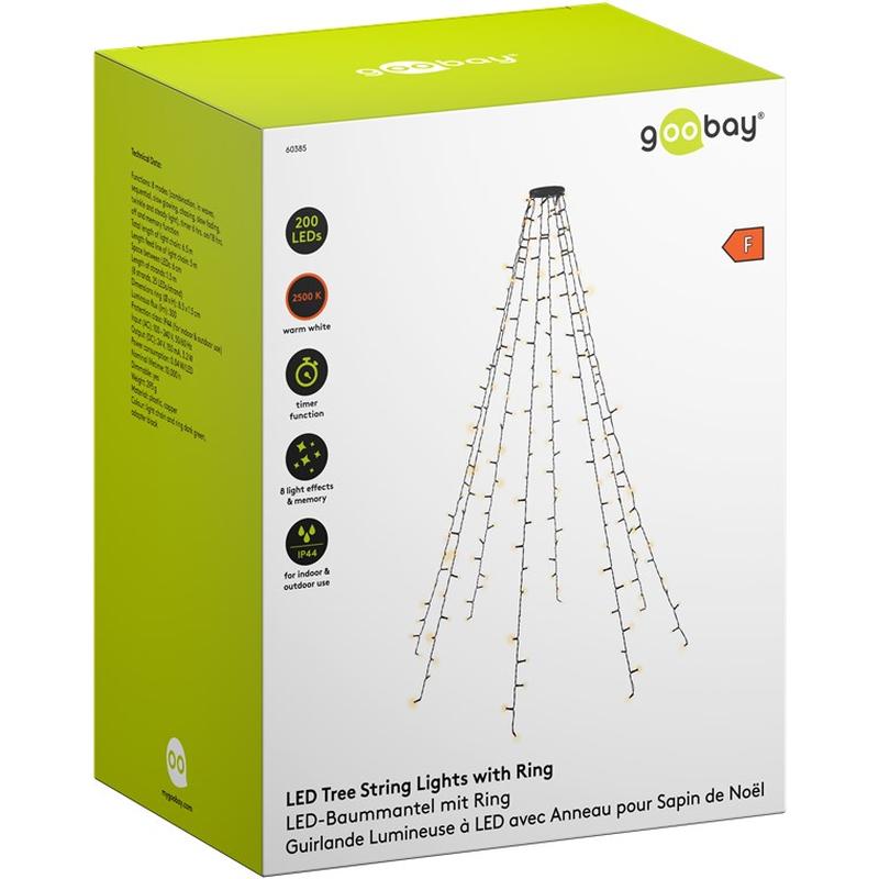 Verlicht moeiteloos je vakantiefeesten met de 200 LED Tree Cover with Ring - 8 x 1,5 m. Deze gespecialiseerde hoes is ontworpen voor kerstbomen van 1,40 tot 1,80 m en stroomlijnt je decoratieroutine, waardoor je de kerstboom sneller en gemakkelijker kunt opzetten dan met traditionele feeënverlichting. De IP44-classificatie zorgt voor langdurige prestaties zowel binnen als buiten, terwijl de donkergroene kabel naadloos opgaat in het natuurlijke gebladerte.