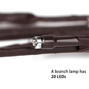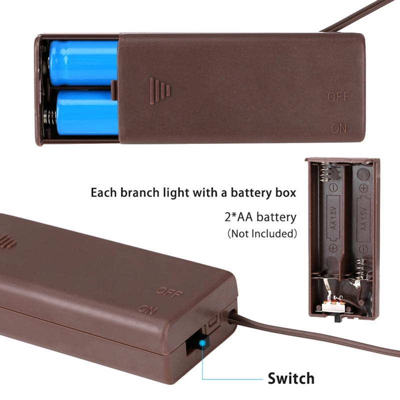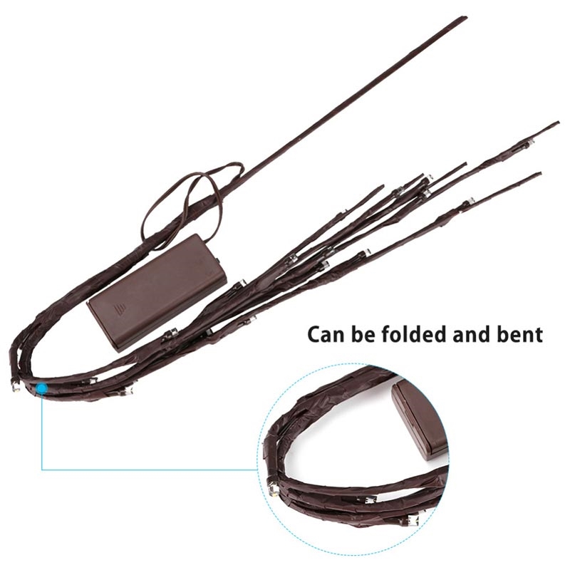 Deze 20-LED simulatie boomtakverlichting brengt een warme en betoverende gloed in elke ruimte. Ontworpen met buigbare takken en veilig aangedreven door twee AA-batterijen, kunnen ze vrij worden gevormd om je ideale look te creëren. De zachte verlichting verfraait bloemstukken, vakantie displays, raamdecoratie en interieurstyling met moeiteloze charme. De kunststof constructie is licht maar duurzaam, waardoor ze geschikt zijn voor binnen en buiten in overdekte ruimtes.