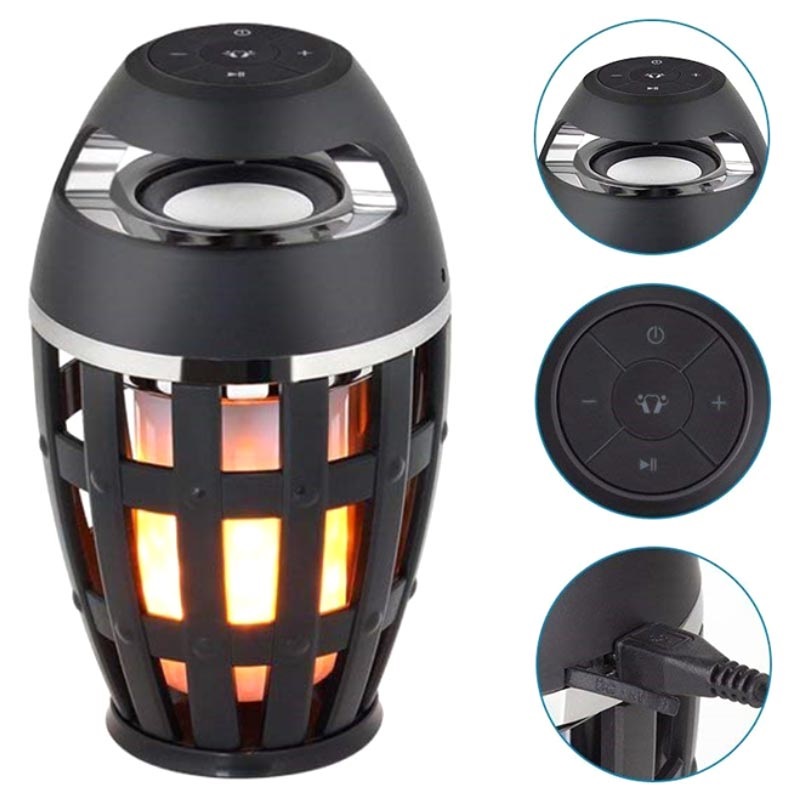 - Een draagbare, krachtige Bluetooth-luidspreker met een ingebouwd LED-vlamlicht
