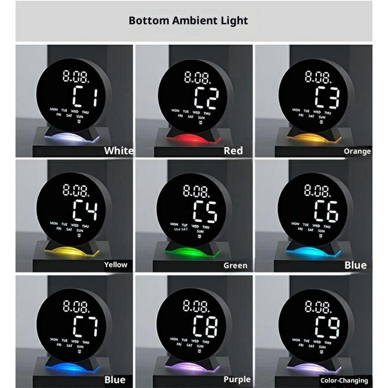 Blijf georganiseerd en op tijd met de multifunctionele elektronische wekker, ontworpen voor zowel functionaliteit als moderne esthetiek. Met een helder LED-display, aanpasbare verlichting en twee alarmen combineert deze klok functionaliteit en stijl perfect voor op je nachtkastje of werkplek.