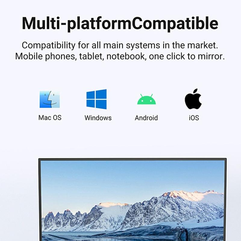 De dongle heeft echte plug-and-play functionaliteit. Er zijn geen extra applicaties, stuurprogramma's of complexe instellingen nodig - sluit hem gewoon aan op je beeldscherm en begin binnen enkele seconden met spiegelen.
