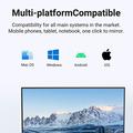 De P1000 is compatibel met Android, iOS, Windows en macOS en ondersteunt Miracast- en P2P-technologieën. Dit maakt naadloze schermspiegeling op meerdere apparaten mogelijk, waardoor het geschikt is voor zowel persoonlijk als professioneel gebruik.