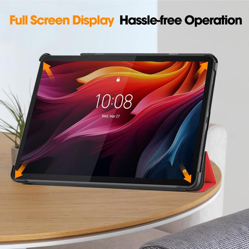 Of je nu een video bekijkt of tekent met een stylus op je Lenovo Tab K11 Plus, deze foliocase houdt hem in een ideale hoek, voor een comfortabelere en productievere ervaring. Ondertussen schakelt de slimme wake-up / sleep-functie het display automatisch in wanneer u de voorklep opent.