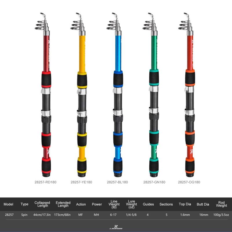 LEO 28257 1.73m telescopische hengel van glasvezel - ultralichte mini-reishengel