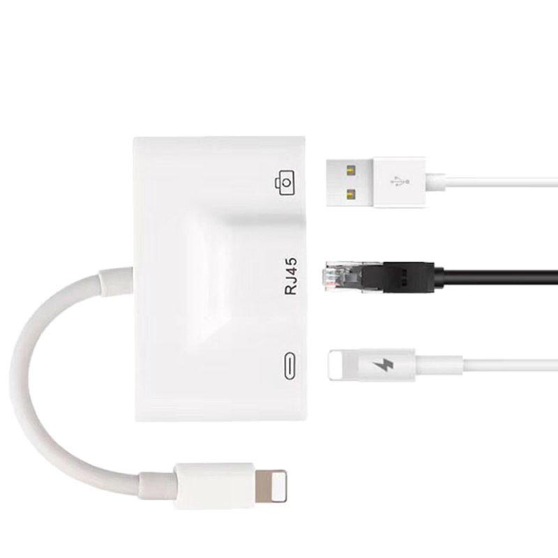 Deze multifunctionele 3-in-1 bliksemkabeladapter heeft een RJ45 Ethernet LAN-netwerkpoort, een USB 2.0-poort en zelfs een 8-pins bliksempoort met pass-through opladen. De adapter ondersteunt 10/100 Mbps internetconnectiviteit en is compatibel met alle 8-pins Apple iPhones en iPads die draaien op iOS 10 of nieuwer.