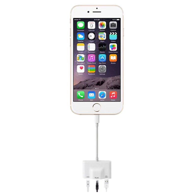 3-in-1 Lightning 8-pins / RJ45 Ethernet LAN-netwerkadapter met USB 2.0 / Lightning 8-pins poort