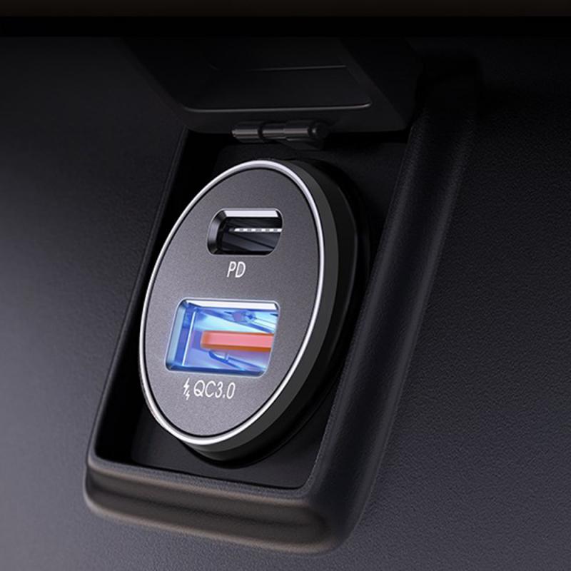 Lisen 48W autolader met USB-C naar Lightning-kabel - USB-C- en USB-A-poorten, snel opladen 3 A, aluminiumlegering