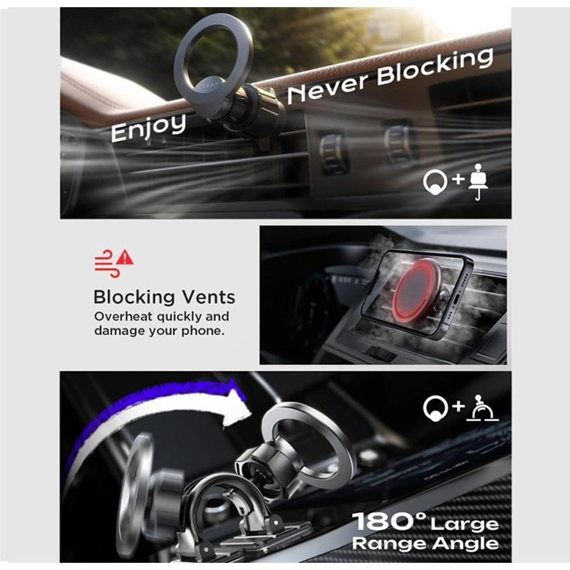 Lisen MagSafe-compatibele magnetische autohouder - ventilatie- en dashboardbevestiging, 360° kogelgewricht, hittebestendige lijm