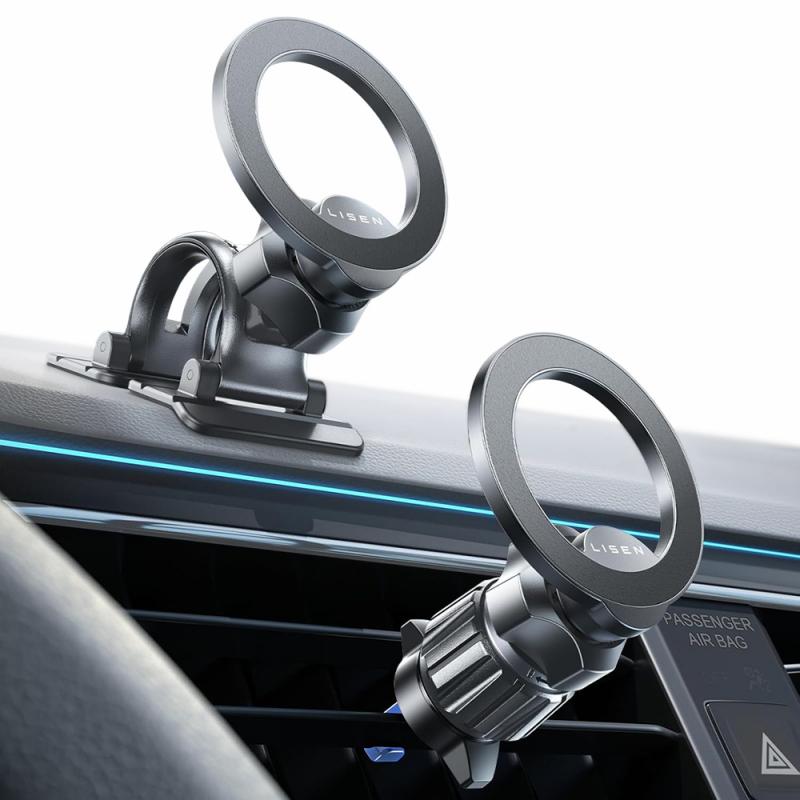 De Lisen universele magnetische autohouder is gemaakt voor bestuurders die een sterke, stabiele telefoonhouder willen die betrouwbaar presteert bij wisselende temperaturen. Gebruik hem in de zomer op het ventilatierooster om te profiteren van de koele luchtstroom van de airconditioning, of schakel in de winter over op montage op het dashboard om warme lucht te vermijden. Met een 3M-lijm van de volgende generatie en een ventilatieroosterhaakoptie biedt hij een stevige bevestiging, flexibele positionering en een strakke integratie in het interieur van uw auto.