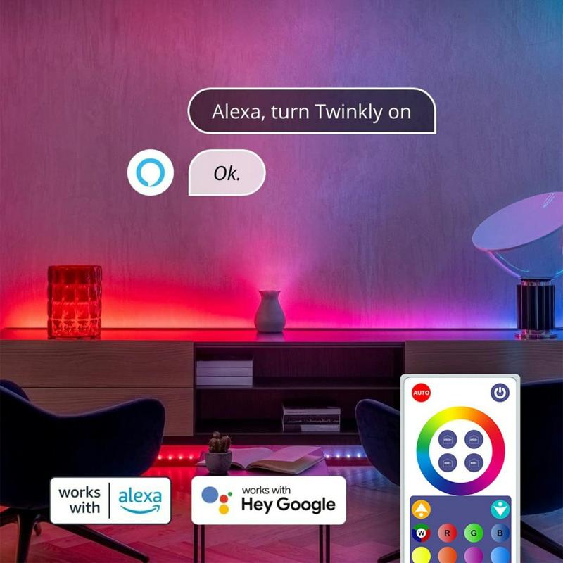 - RGBIC-technologie: Geeft meerdere kleuren tegelijk weer voor dynamische verlichtingseffecten.