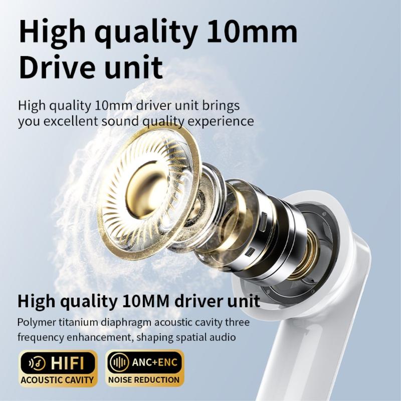 - Dubbele ruisonderdrukking: ANC + ENC met tot -30 dB ruisonderdrukking