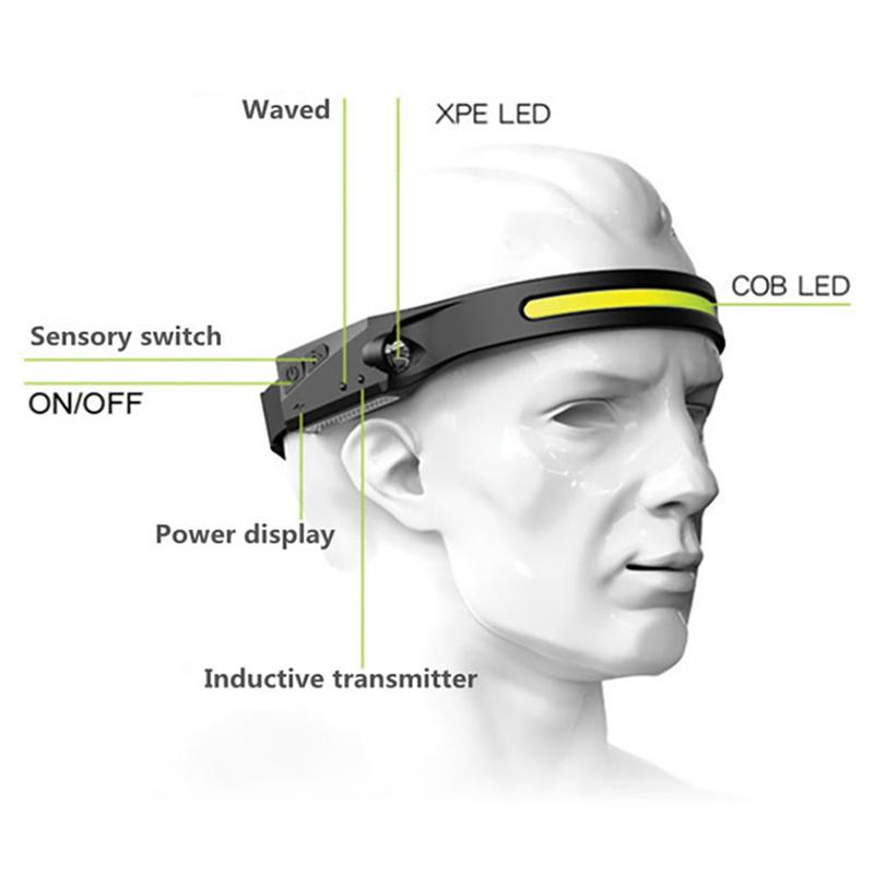 LX200 Oplaadbare LED Hoofdlamp - COB Super Heldere Hoofdlamp met 4 Lichtstanden, Waterdicht