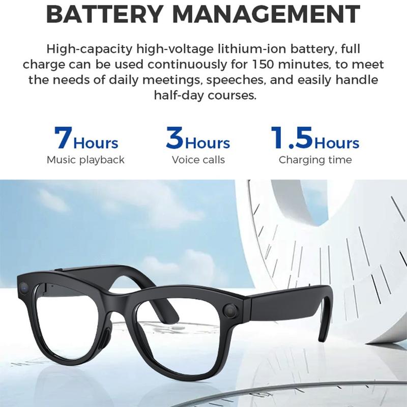 De M01S AI slimme bril combineert intelligente vertaling, HD-opname, meeslepende audio en spraakinteractie in één slank draagbaar apparaat. De bril is uitgerust met een Sony IMX219 500W camera en maakt foto's van hoge kwaliteit en vloeiende 1080p 30fps video. Of je nu je dag documenteert of handsfree content opneemt, de M01S levert helderheid en stabiliteit met ingebouwde video-optimalisatie.