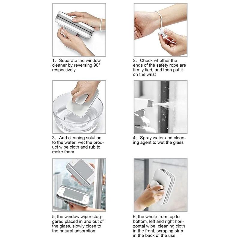 - Dubbelzijdig magnetisch ontwerp: Maakt gebruik van sterke magneten om de twee reinigingspads stevig bij elkaar te houden door het glas heen, zodat u de binnen- en buitenkant tegelijkertijd kunt schoonmaken zonder dat u een risicovolle toegang van buitenaf nodig hebt.