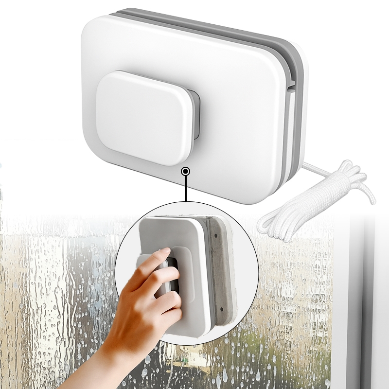 - Dubbelzijdig magnetisch ontwerp: Maakt gebruik van sterke magneten om de twee reinigingspads stevig bij elkaar te houden door het glas heen, zodat u de binnen- en buitenkant tegelijkertijd kunt schoonmaken zonder dat u een risicovolle toegang van buitenaf nodig hebt.