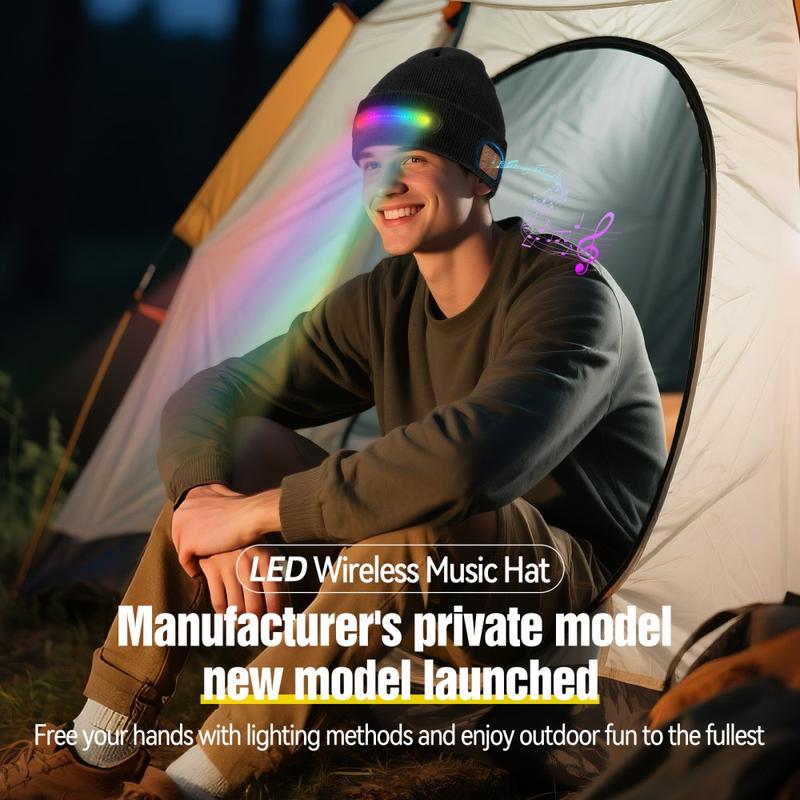 M1-BTD4 LED muts met Bluetooth 5.4 & Stereo Speakers - Warme Muziekmuts met Kleurrijke Lampjes voor Nachtlopen & Buitensporten
