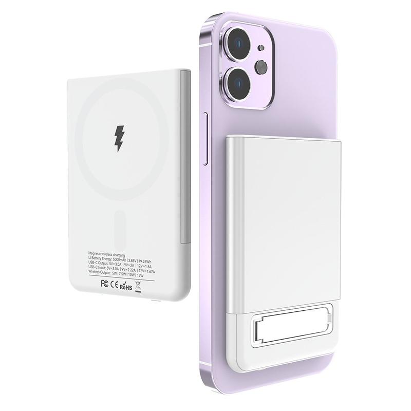 Ultradunne metalen MagSafe draadloze oplader met kickstand voor iPhone 12/13/14/15/16/17/Air - 15W/5000mAh