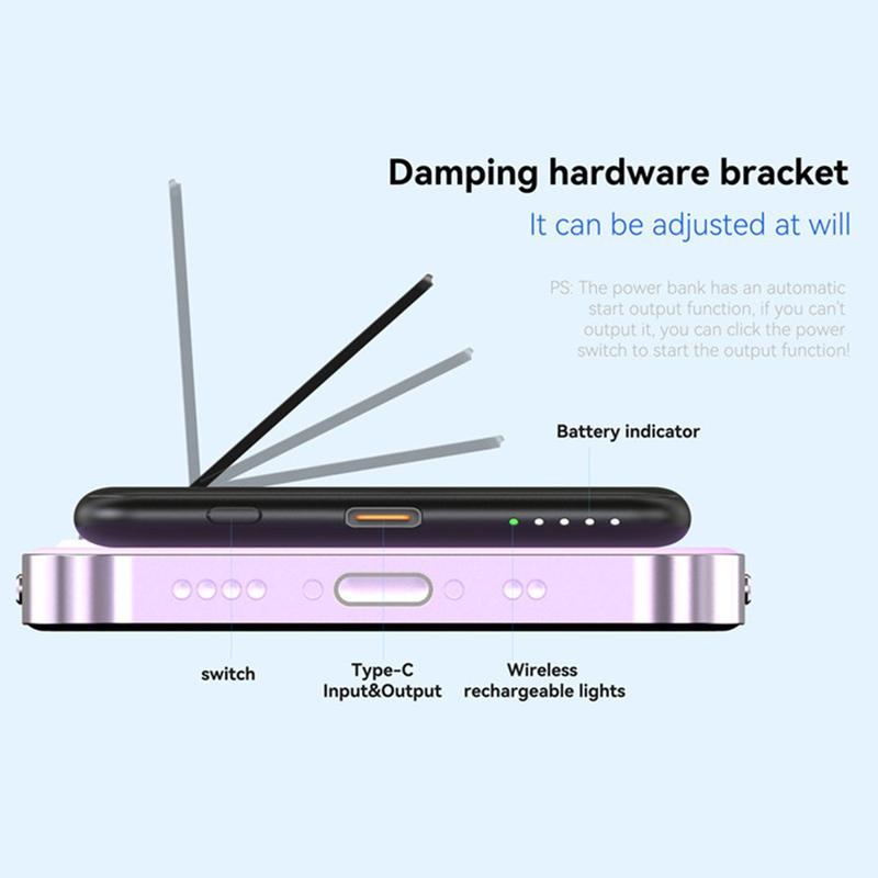 De lader is voorzien van draadloos opladen met hoge snelheid tot 15W, waardoor compatibele apparaten efficiënt van stroom worden voorzien. Hij heeft ook een ingebouwde kickstand, zodat je hem handsfree kunt gebruiken terwijl je je apparaat oplaadt. Met een capaciteit van 5000mAh levert hij voldoende stroom om je apparaten de hele dag opgeladen te houden. De volledige oplaadtijd van 65 W is ongeveer 1,5 tot 2 uur, zodat je snel en efficiënt kunt opladen. De oplaadbare Li-polymeer batterij en geavanceerde temperatuurregeling maken het een betrouwbare en veelzijdige oplaadoplossing voor al je oplaadbehoeften.