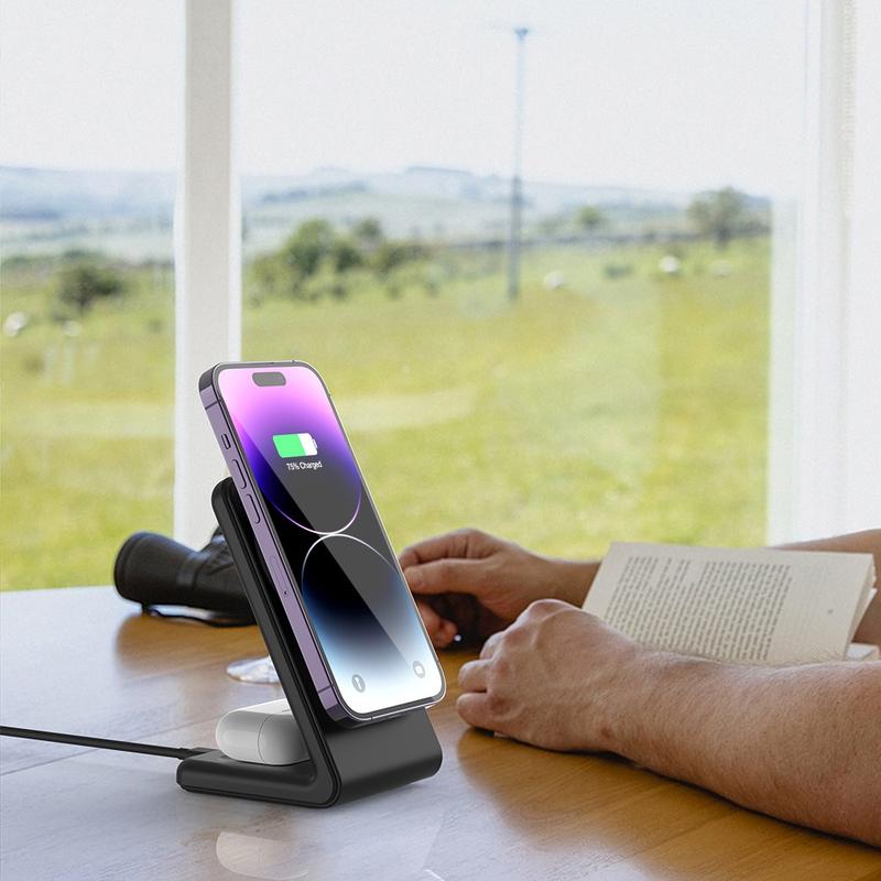 Laad je iPhone en AirPods tegelijkertijd op zonder de rommel van meerdere kabels. De ingebouwde magneten zorgen voor een perfecte klik en stabiele grip, zodat je altijd efficiënt en veilig kunt opladen.