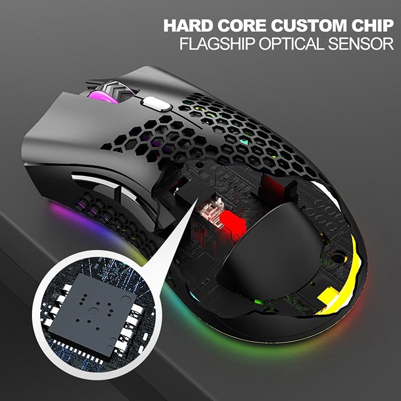 Het honingraatontwerp van de behuizing kan het gewicht van de muis tot 25% verminderen in vergelijking met traditionele ontwerpen, waardoor de beweeglijkheid wordt verbeterd en de handen minder snel vermoeid raken tijdens lange gamesessies.