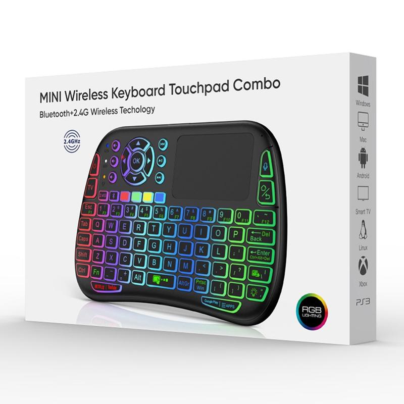 M9 Mini draadloos toetsenbord met touchpad en RGB-achtergrondverlichting - 2,4 GHz USB/Bluetooth 5.0 afstandsbedieningstoetsenbord voor smart-tv, Android TV Box, pc