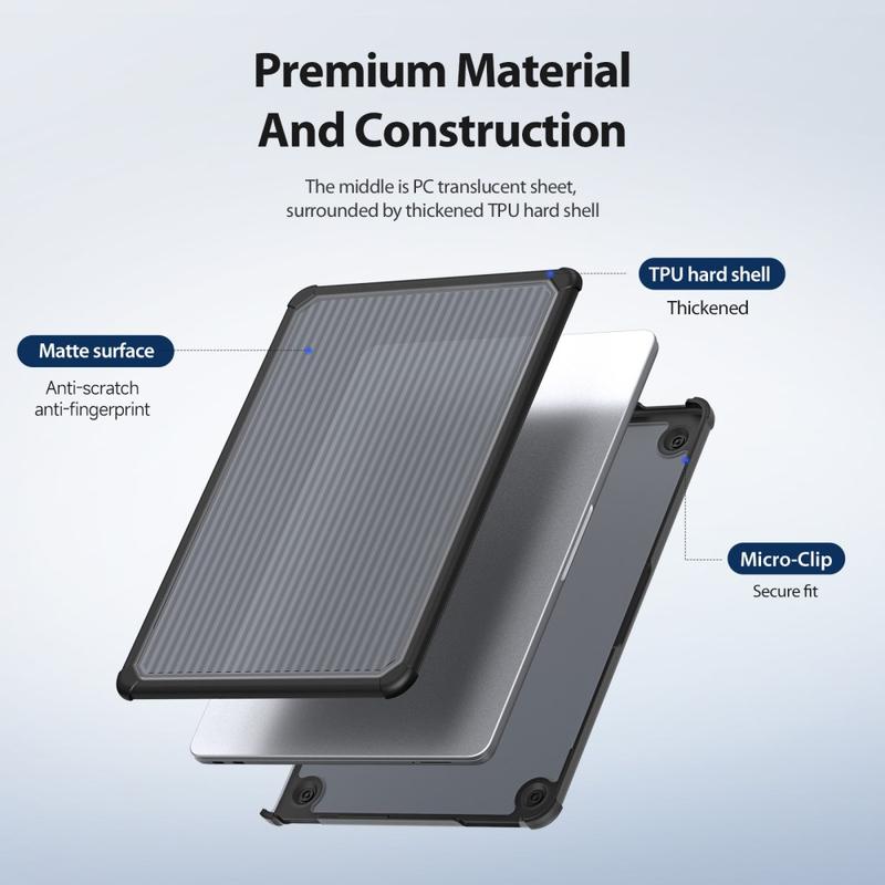 Het nauwkeurig gevormde ontwerp zorgt voor een perfecte pasvorm met nauwkeurige uitsparingen en soepel openen en sluiten. Verhoogde antislipkussentjes aan de onderkant verbeteren de stabiliteit en bevorderen de luchtstroom voor een betere warmteafvoer, terwijl het microclipontwerp de hoes stevig op zijn plaats houdt en eenvoudig aanbrengen of verwijderen mogelijk maakt wanneer dat nodig is.