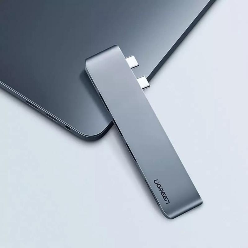 Ugreen CM251 6-in-1 USB-C Hub voor MacBook Pro, MacBook Air - 100 W PD Pass-Through, 3× USB-A 5 Gb s, SD/microSD kaartsleuven, Space-Grey Aluminium