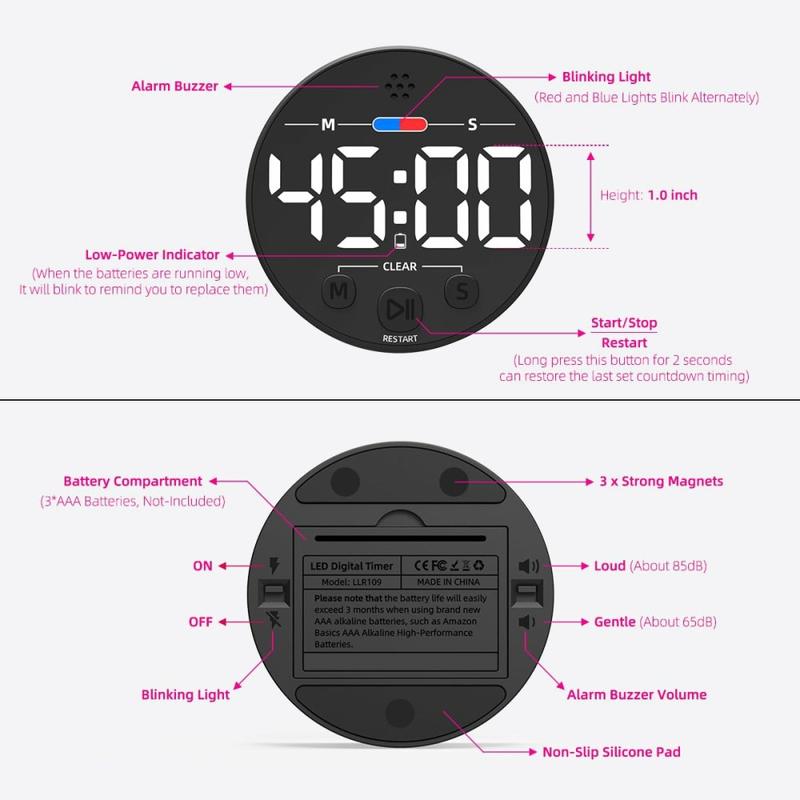 Eén klein apparaatje vervangt telefoonapps die batterijen leegmaken en meel verzamelen, en geeft je tactiele controle, luidere waarschuwingen en directe leesbaarheid vanaf de andere kant van de kamer. Het magnetische pad houdt het aanrecht vrij, terwijl de AAA-stroom en het sterke ABS-omhulsel zorgen voor jarenlang betrouwbaar gebruik, waardoor je tijd en geld bespaart ten opzichte van goedkope wegwerptimers.