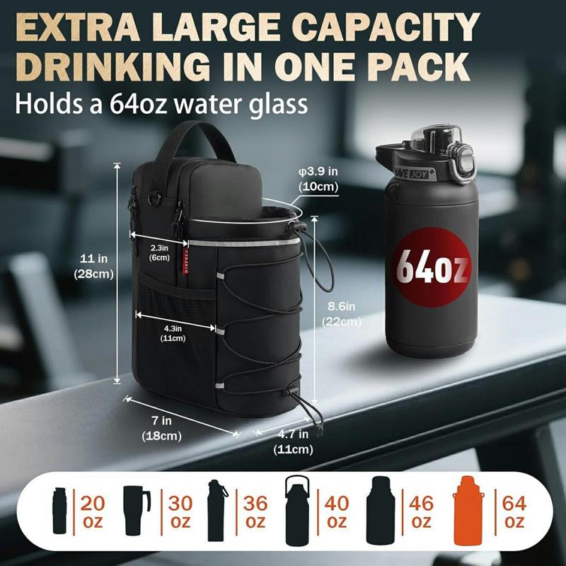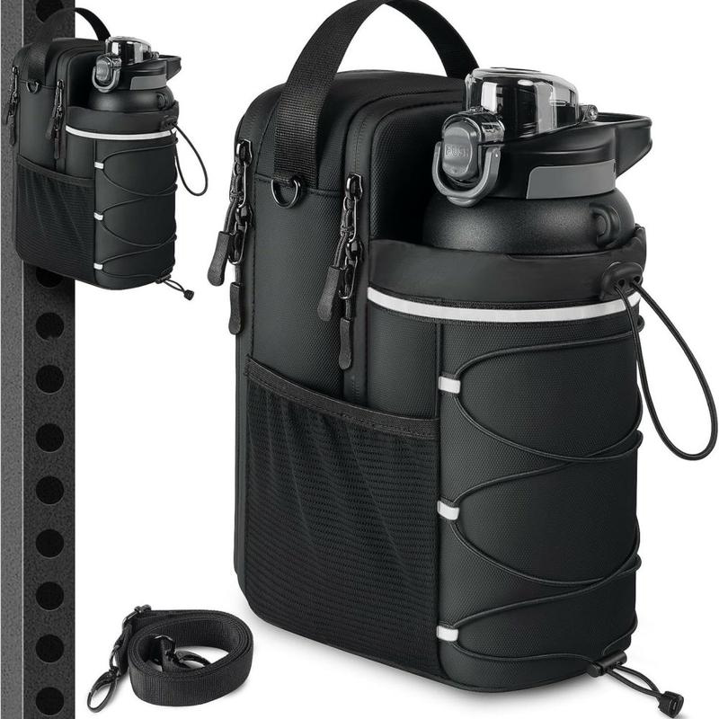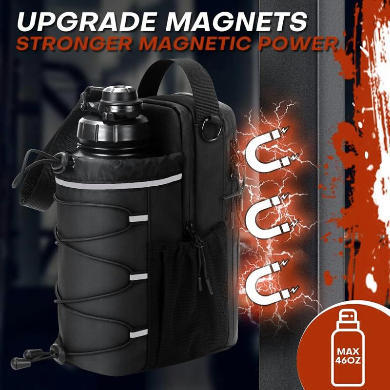 Handsfree hydratatie ontmoet een strakke stedelijke stijl: deze waterdichte sling van PU-polyester heeft krachtige magneten die een 1,9 L / 3 kg fles vastzetten aan metalen fitnessapparatuur of je koelkast, terwijl ritsvakken telefoon, sleutels en pasjes brandschoon houden.