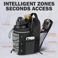 Verbeter je trainingsroutine met een tas die hydratatie, technologie en veiligheid letterlijk aan je zijde houdt - geen vloercontact, geen gedoe.