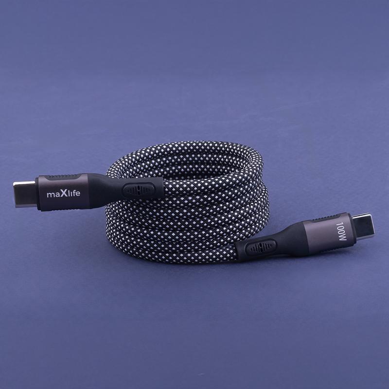 Maxlife MXUC-11 magnetische USB-C naar USB-C kabel - 1m, 100W snel opladen, gevlochten nylon, versterkte aansluitingen