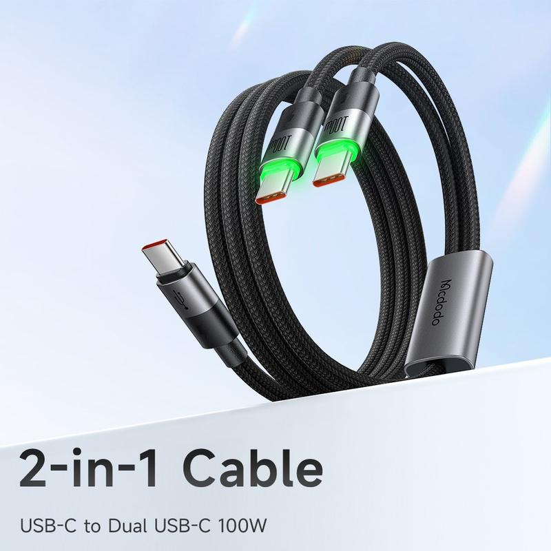 Mcdodo CA-6740 2-in-1 USB-C kabel met 100W snel opladen, LED-lampje - 1.5m