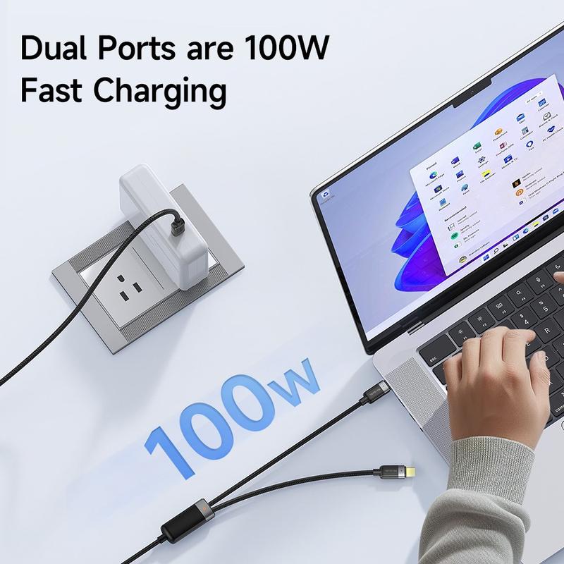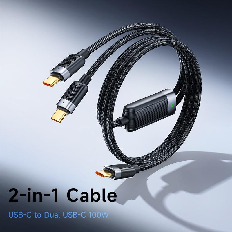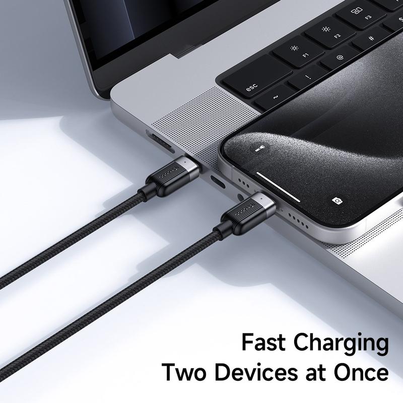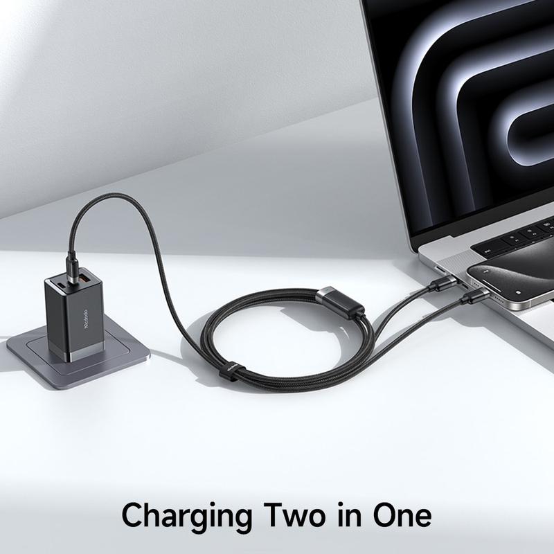 Ben je het beu om te jongleren met aparte kabels voor je laptop en telefoon? Deze tweekoppige MCDODO-kabel stroomlijnt het leven onderweg. Twee USB-C connectoren komen uit een enkele, stevige gevlochten mantel, waardoor je de vrijheid hebt om twee apparaten snel op te laden of één krachtpatser aan te drijven met de volledige 100 W - geen adapters, geen gedoe.