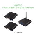 - Eén-naar-twee-uitgang - Eén zender ondersteunt twee ontvangers voor gelijktijdig afspelen op meerdere schermen.