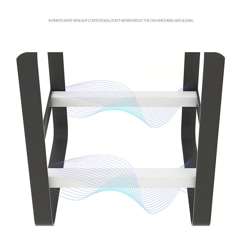 Dit metalen afdruiprek biedt de perfecte mix van hygiëne, duurzaamheid en moderne stijl. Het compacte, rechtopstaande ontwerp helpt ruimte te besparen en schoner en veiliger servies op te bergen, waardoor het ideaal is voor huizen van elke grootte.