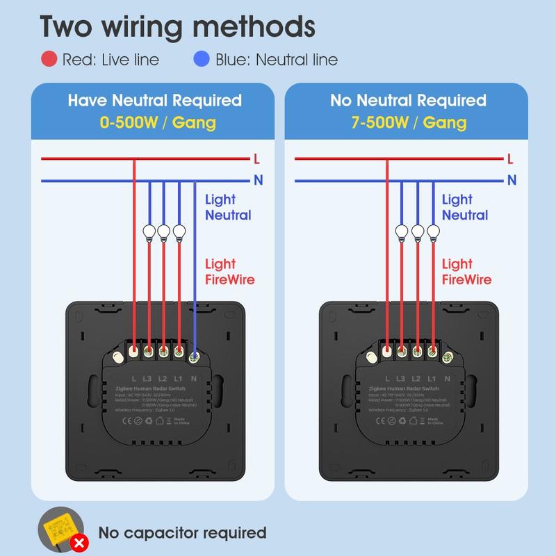- Radar Bewegingsdetectie: Maakt gebruik van geavanceerde radartechnologie om menselijke aanwezigheid nauwkeuriger te detecteren, waardoor energieverspilling wordt geminimaliseerd.