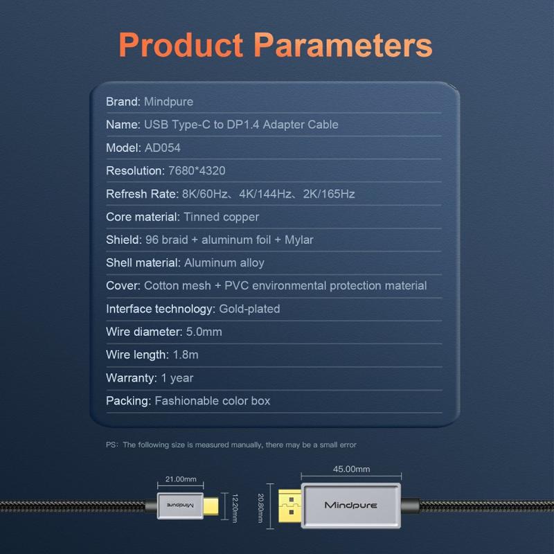 De MindPure USB Type-C naar DisplayPort DP 1.4 kabel is essentieel voor degenen die de hoogste kwaliteit visuals en prestaties eisen. Of het nu voor professioneel gebruik, gaming of home entertainment is, deze kabel zorgt ervoor dat je inhoud op zijn best wordt weergegeven. Met ondersteuning voor 8K-resolutie, Dynamic HDR en een duurzaam ontwerp is dit een toekomstbestendige oplossing voor al je multimediabehoeften.