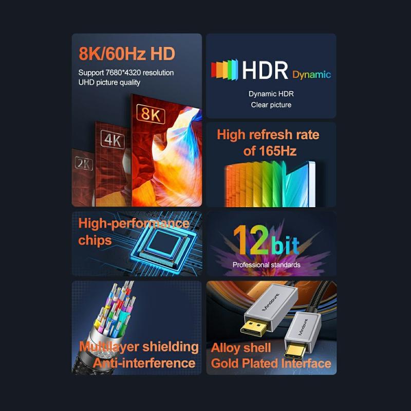 Verbeter uw visuele ervaring vandaag nog met de MindPure USB Type-C naar DisplayPort DP 1.4 kabel!
